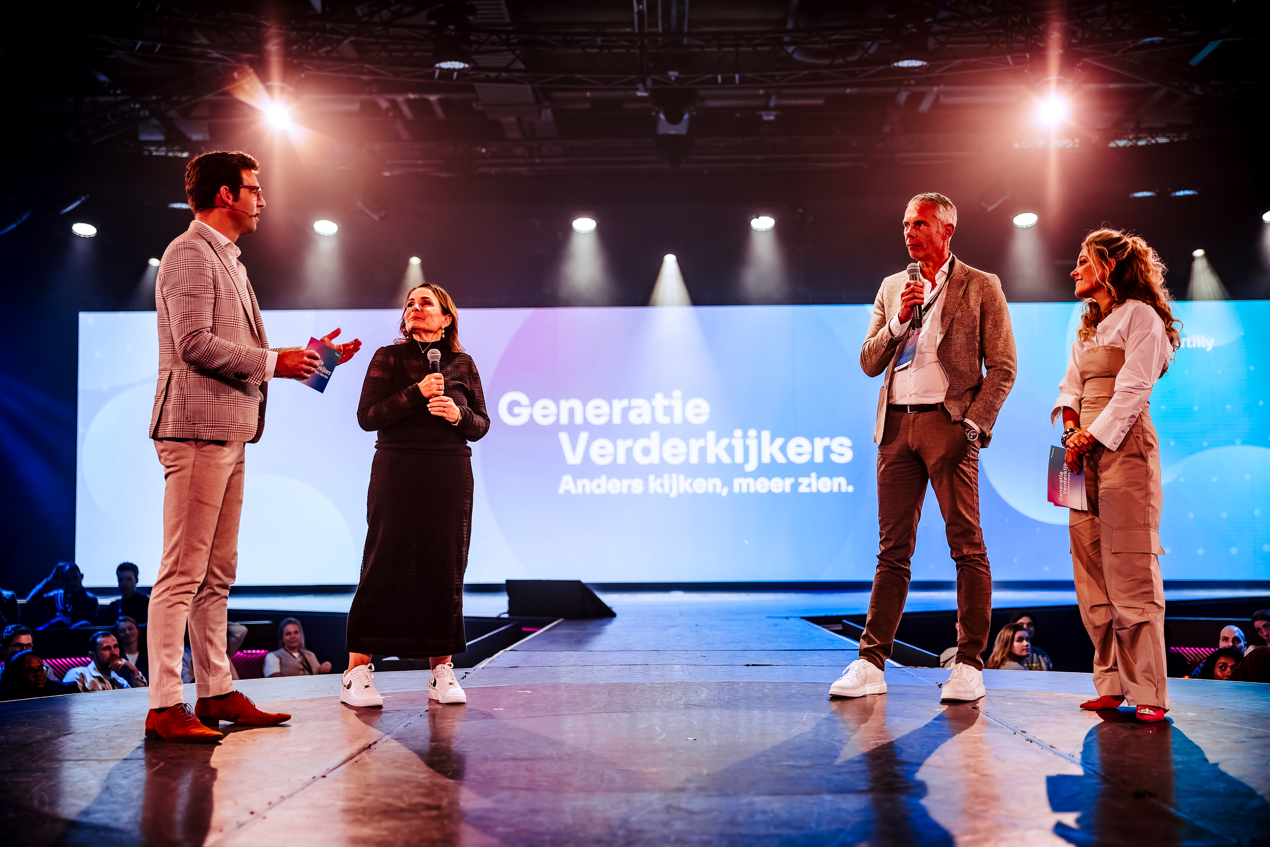 In plaats van generaties tegenover elkaar te zetten, lag de focus op drijfveren en samenwerking, door te kijken naar persoonlijkheden. Door de inzet van de juiste sprekers en werkvormen werd het thema tastbaar. Zo ontstond een setting waarin deelnemers niet top-down werden toegesproken, maar zij aan zij het gesprek met elkaar aangingen.
